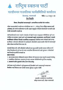 रास्वपा पाल्हीनन्दन गाउँपालिका सभापति गुड्डु गुप्ताद्वारा हस्ताक्षरित विज्ञप्तिमा पार्टीका सम्पूर्ण कार्यकर्ता तथा शुभेच्छुकलाई उत्तेजनामा नआई धैर्यताका साथ पार्टीको काममा जुटिरहन आग्रह गरिएको छ ।